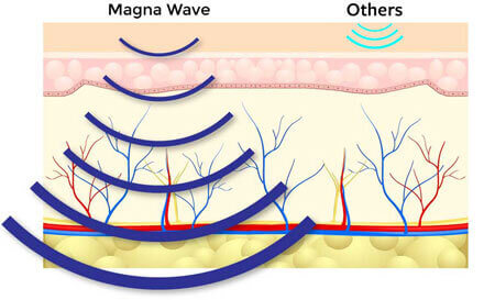 MAGNAWAVING BENEFITS REACH THROUGH THE BODY, WHILE LOW POWER THERAPY IS ONLY SKIN DEEP